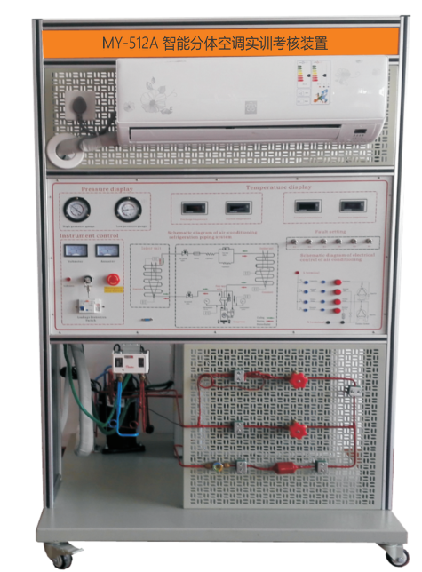 提供模擬空調(diào)與模擬多個故障打接線點,提供常見的空調(diào)電氣節(jié)電路連接,用來模擬系統(tǒng)的故障;設置類型有:電源電路、溫度傳感電路、驅(qū)動電路、壓縮機保護電路、室內(nèi)風機調(diào)速電路等?照{(diào)模擬故障開關量、模擬故障開關量,滿足多點故障設置要求。