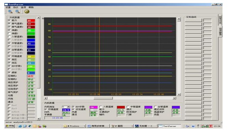 F) 多達(dá)8路設(shè)備運(yùn)行監(jiān)控:在線監(jiān)控機(jī)組的壓縮機(jī)、膨脹閥、各點(diǎn)溫度、保護(hù)動(dòng)作電路等運(yùn)行狀態(tài)。