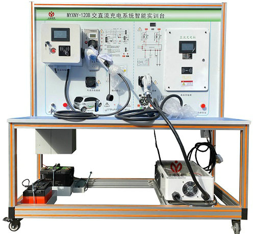 該設備完整展示了新能源汽車交流充電裝置系統(tǒng),全面展示了充電樁的組成、結構、原理、操作及排故障。配套國標充電槍與車載充電座,真實的鋰電池組充電負載。