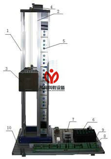 模型由主體框架及導(dǎo)軌、轎箱及門控系統(tǒng)、配重、驅(qū)動電機、外呼按鈕及顯示屏、內(nèi)選按鈕及指示燈和控制系統(tǒng)組成,結(jié)構(gòu)如圖所示。