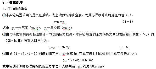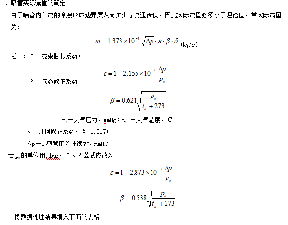 噴管的背壓由固定在排氣管段上的真空表測定,通過噴管的空氣流量則由孔扳流量計及U型管壓差計測定。