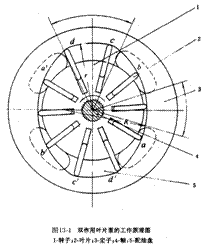 葉片式轉(zhuǎn)向油泵按其轉(zhuǎn)子葉片每轉(zhuǎn)供油次數(shù)和轉(zhuǎn)子軸的受力情況可以劃分為單作用非卸荷式和雙作用卸荷式兩大類。北京切諾基吉普車采用雙作用卸荷式葉片油泵,如圖所示,由轉(zhuǎn)子1、葉片2、定子3、軸4、配油盤5和殼體等機件組成。