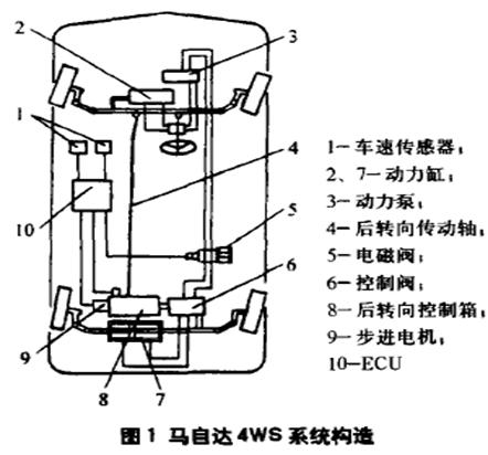 馬自達汽車四輪轉(zhuǎn)向系統(tǒng)如下圖所示。