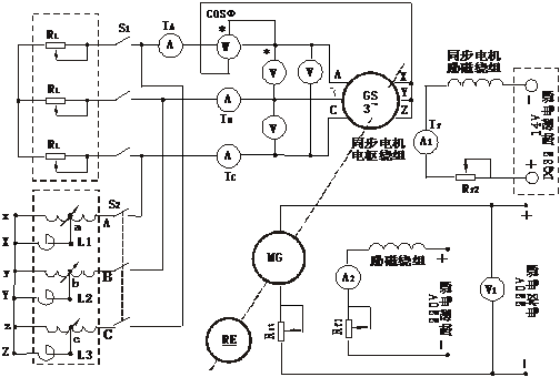 圖1 三相同步發(fā)電機(jī)實(shí)驗(yàn)接線圖